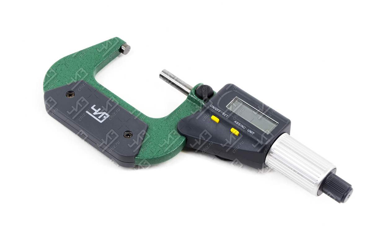 Микрометр этой модели имеет цифровой блок для отображения результатов измерений. Благодаря этому увеличивается точность выполнения замеров и облегчается его использование, так как долго изучать особенности использования микрометрических шкал не требуется.