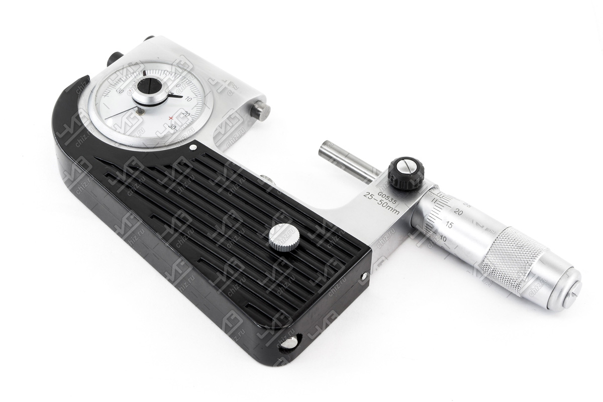 Как и все микрометры с диапазоном измерения более 25 мм, изделия типа МР-50 укомплектованы установочными мерами. Измерительные пятки имеют твердосплавные напайки, которые защищают измерительные поверхности от истирания и деформации, поэтому микрометр обеспечивает высокую точность измерений даже после многолетней эксплуатации.