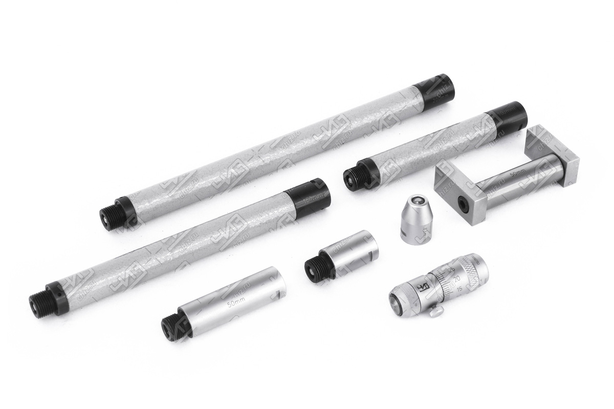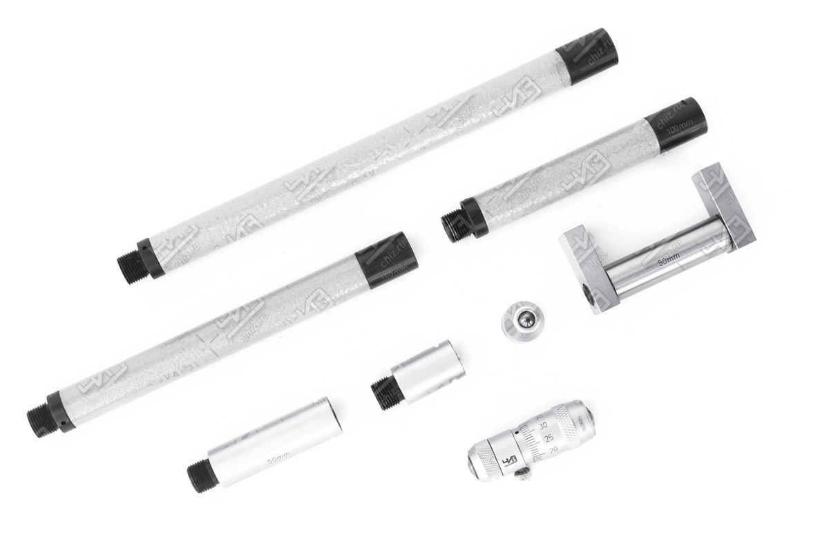 Для настройки прибора перед выполнением замеров используются стержни-вставки разной длины. Они соединяются друг с другом с помощью встроенных втулок. Предварительная калибровка производится с помощью мер длины, которые входят в комплект поставки прибора.