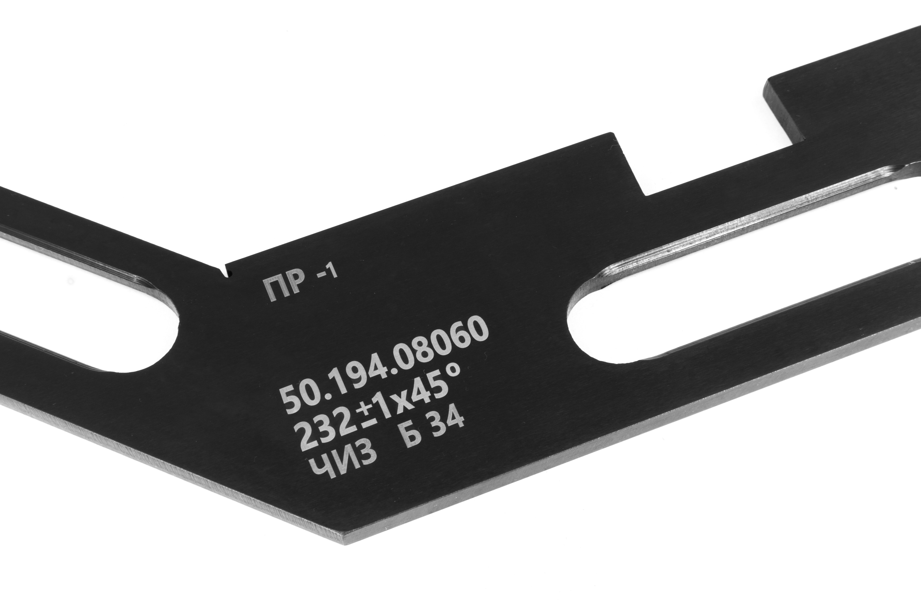 Калибр-скоба 50.194.08060 ПР (232 ±1х45°) мм для контроля ширины по наклонным поверхностям клиновых проемов надрессорной балки.