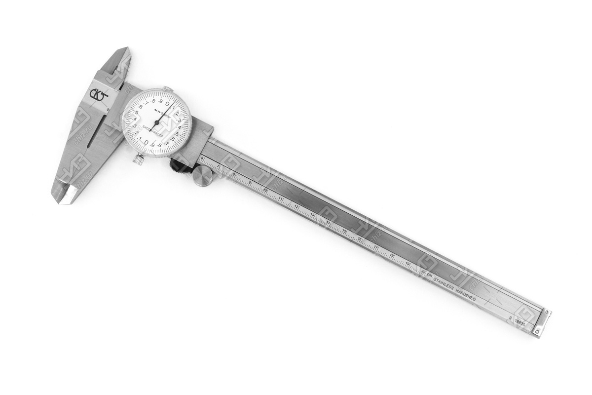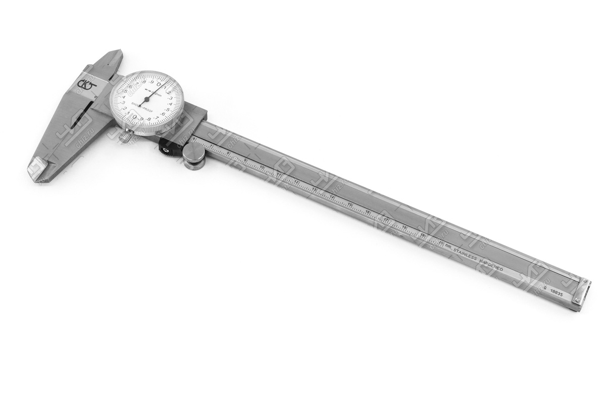 Штангенциркуль со стрелочным индикатором. Предназначен для наружных и внутренних измерений,