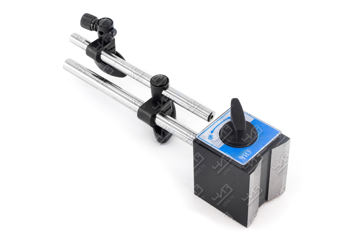 Штатив для измерительных головок типа ШМ-II-Н имеет магнитное основание и низкую колонку, используется для измерительных головок с ценой деления 0,01мм и более. Включение/выключение магнита осуществляется поворотом ручки. Тип Ш-III предназначен для закрепления измерительной головки с ценой деления 0,01 мм и более при абсолютных и относительных измерениях линейных размеров.