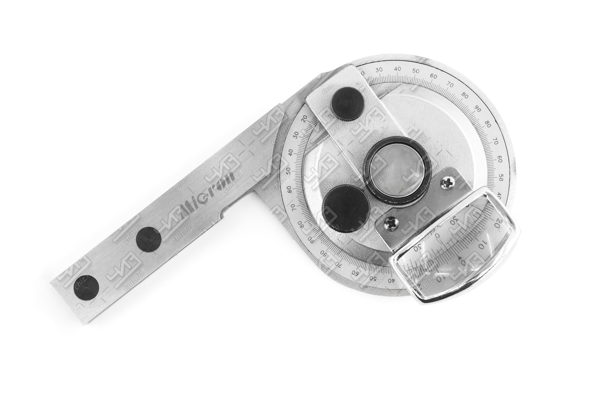 Угломеры нониусные с лупой предназначены для измерения наружных и внутренних углов. Тех.характеристики: Диапазон измерения -наружных углов: 0-360° (4х90°), -внутренних углов 0-270°; Значение отсчета: -по основной шкале 1°, -по нониусу 5'; Оснащены дополнительной линейкой и увеличительной лупой для облегчения считывания показаний.
